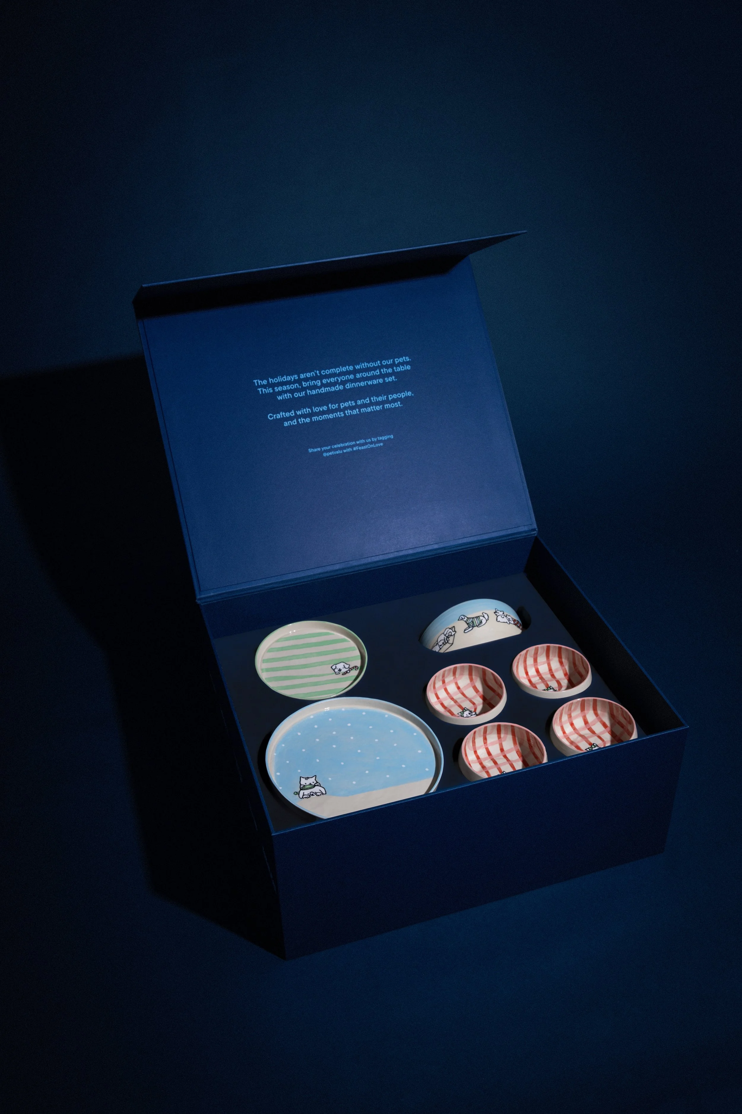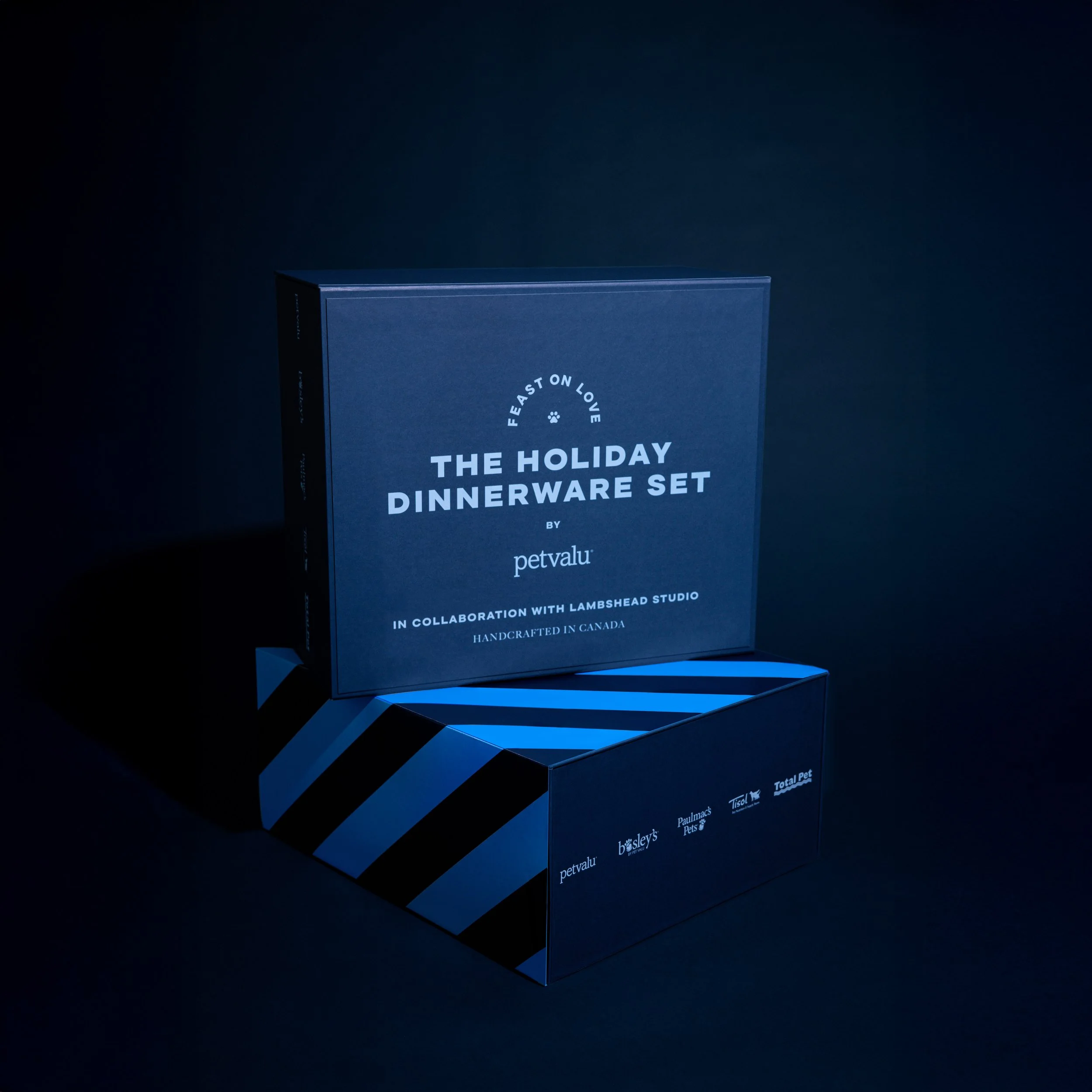 So Petvalu created the ‘Feast on love’ holiday dinnerware, a set that gives your pet the same festive treatment you give yourself. The ceramics were handcrafted by a local artist Lambshead made with love to bring everyone around the table for the moments that matter most. The package was designed in a special box that was custom made to be transported safely across North America.