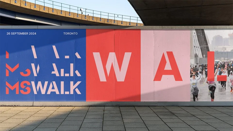 The ask was to evolve the visual identities of both these events to be more cohesive with the MS Canada brand. Inspired by the original MS logo, a stencil typeface wordmark that became the connective tissue across all event communications.